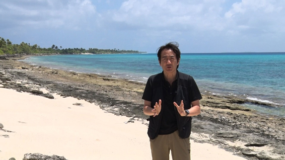 ロンゲラップ島を取材する山口豊キャスター |