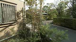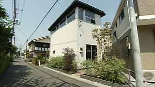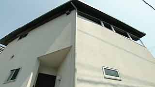 直角の角がない変形敷地。建物も敷地に合わせ変形した平面を持ちます。プライバシーに配慮して、路面の開口は水平に連続した高窓以外は控えめです。 |