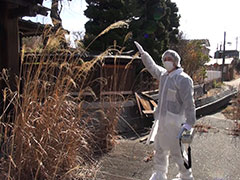 いまだ除染廃棄物の積み上がる福島を上空から伝える一方、