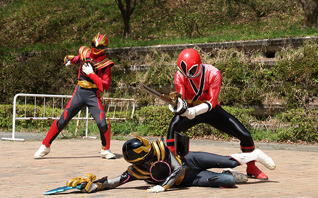 そこへ、シンケンレッドに変身したファイヤキャンドル(三本木大輔)が乱入。ゴジュウジャーとブライダンは、それぞれ燃えるように熱い戦いを繰り広げる!