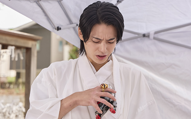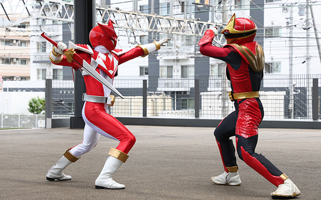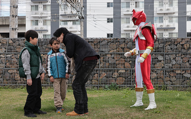 正月で街がにぎわうなか、吠(冬野心央)の前に、謎の赤い戦士・オリガレッド(声:土屋神葉)が現れた! 折り紙で戦うメガトン級に強いオリガレッドは、ある理由から吠を探していたそうで、2人は戦うことに…!