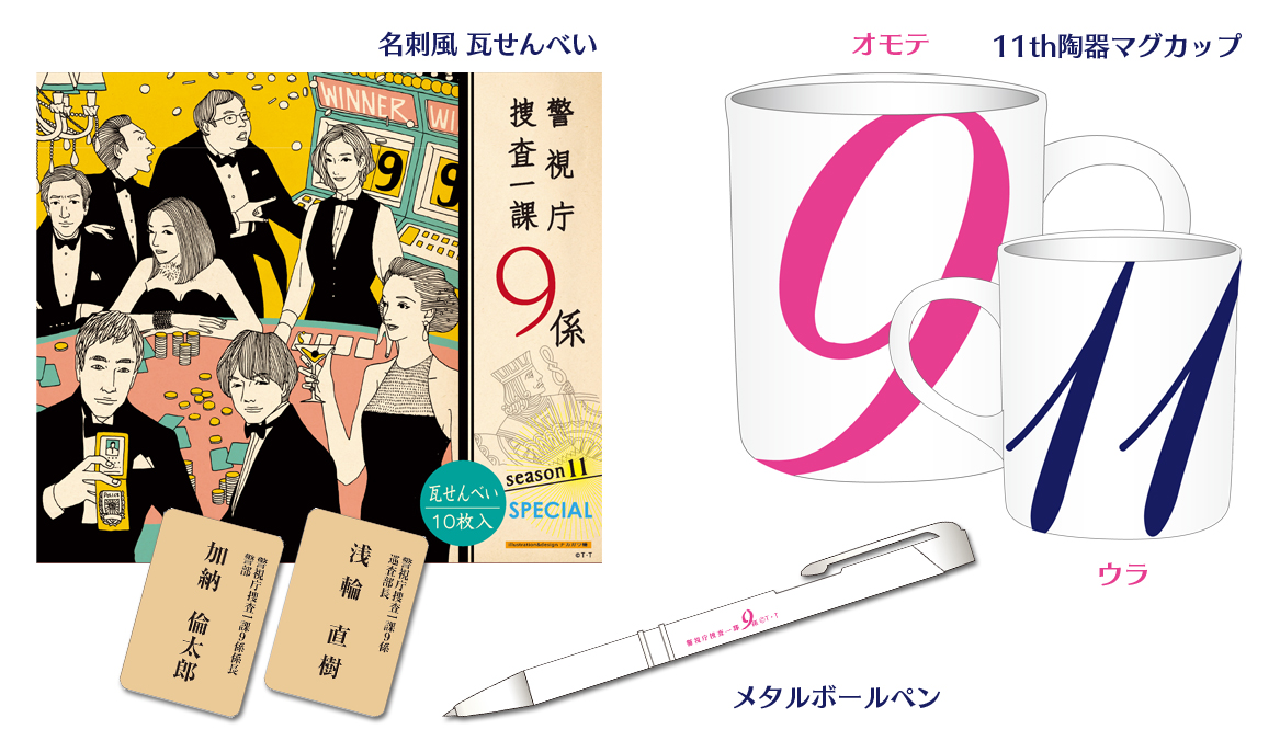 昨年発売して人気を博した10周年記念マグカップの、シーズン11バージョンです。好評によりシリーズ化しました。表は9係の「9」、裏はシーズン11の「11」という文字が入ったシンプルなデザインが、シックで使いやすいと大評判! 大人の手にちょうどいい、たっぷり飲めるサイズです。底面には、ロゴと「11th ANNIVERSRRY」の文字が入っています。