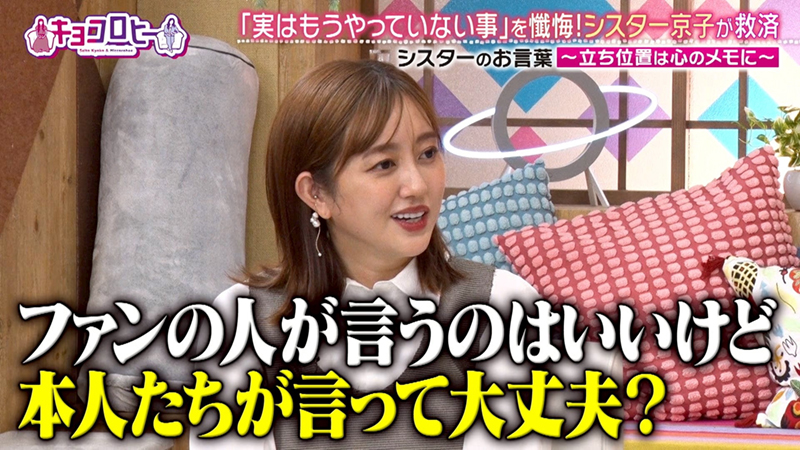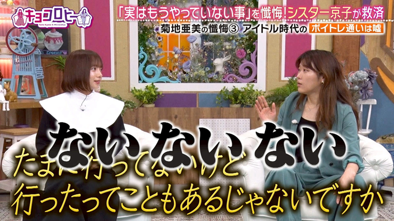 ▼飽きてしまったことを世間に言えず悩む白石麻衣と菊地亜美に“飽きた”とハッキリ言えるシスター京子が救いの言葉をかける!!