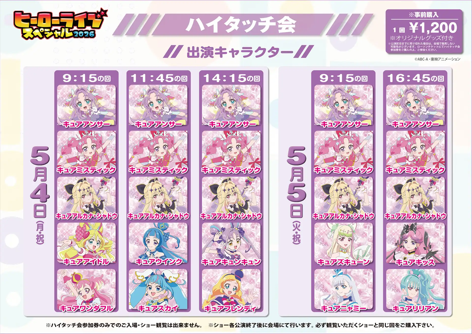 ※公演終了後に、別途オプションチケットをご購入の方へ、ヒーローやプリキュアとのハイタッチ会を実施いたします。
