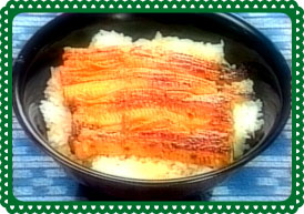 どんぶりにご飯を盛り、たれを塗ります。焼いたうなぎをのせ、たれを塗り出来上がり