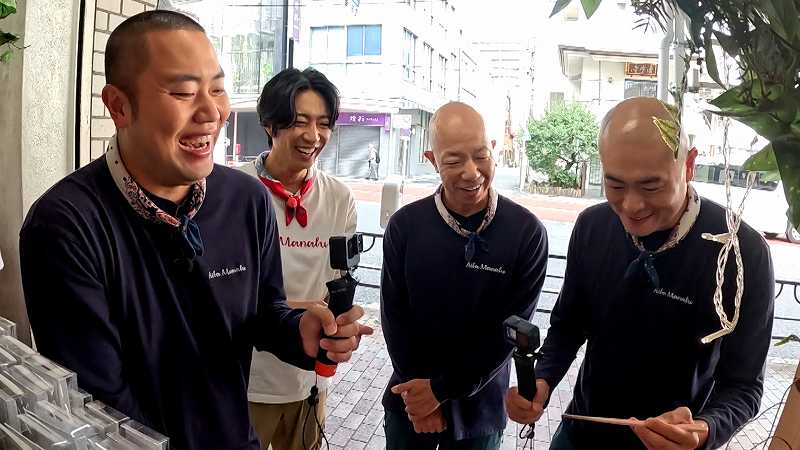 お玉コーナーに並ぶお玉の数に驚くマナブメンバー!