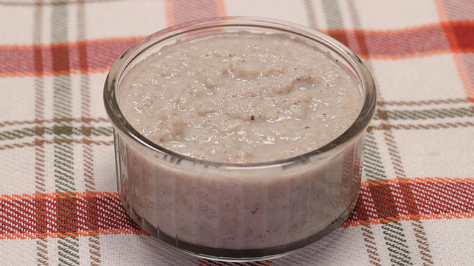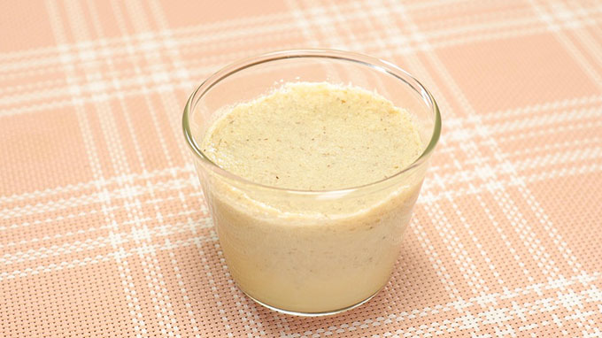 - ミキサーに茹でたごぼう、牛乳を入れて攪拌する。
