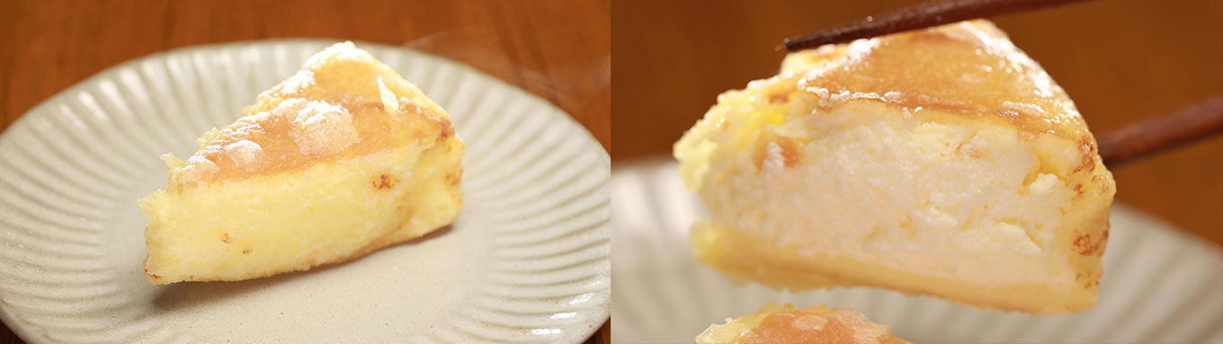 - ベイクドチーズケーキに天ぷら衣をつける。