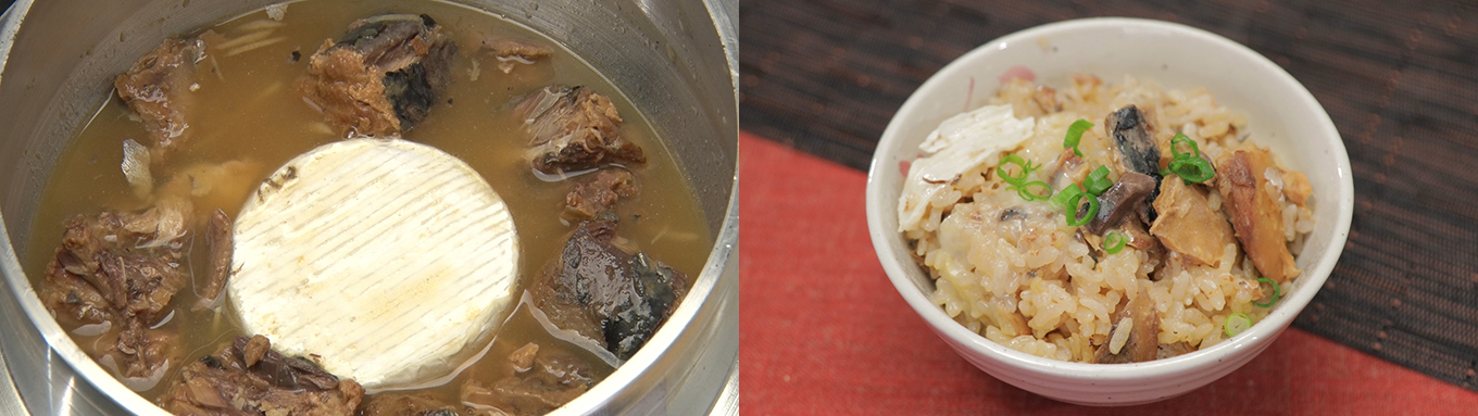 「丸ごとカマンベールのサバ味噌釜飯」