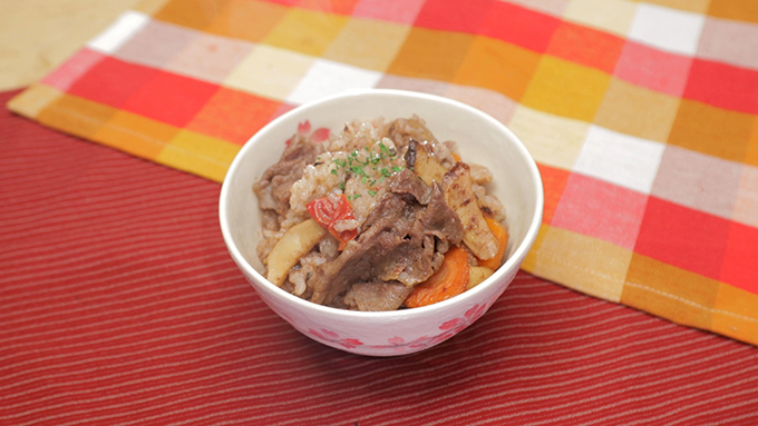 - 炊飯器の釜に浸水して水気を切った米、水、ウスターソース、ブイヨン、ミニトマト、牛肉、炒めた野菜を入れ、最後にチョコレートアイスをのせて炊く。