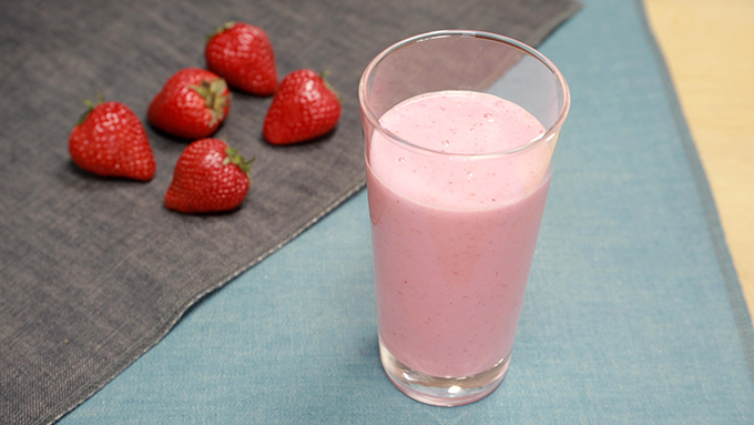 - 冷凍イチゴ、牛乳、グラニュー糖をミキサーに入れ、攪拌する。
