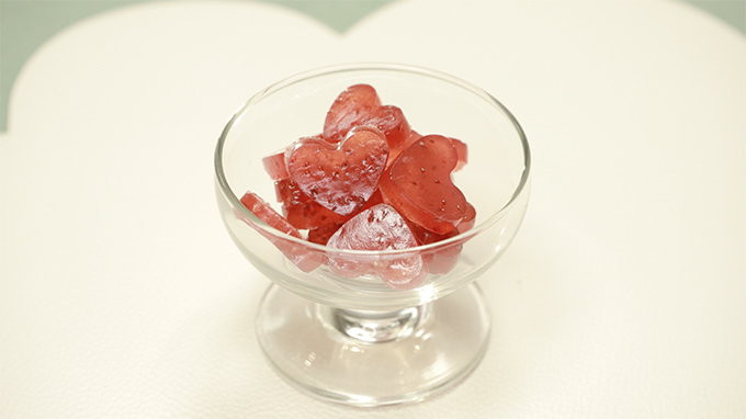 - 型に流し入れ、冷蔵庫で約30分冷やし固め、型から外す。
