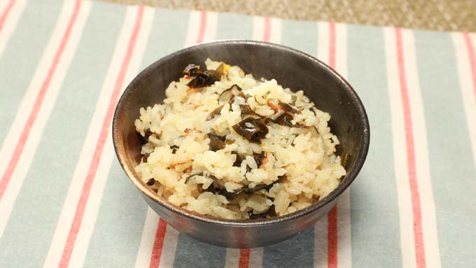 - 炊飯器の釜に浸水して水を切った米、溶いた味噌、ネギ、乾燥わかめ、氷を入れ炊く。