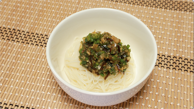- そうめんを表記時間通り茹で、氷水でしめる。