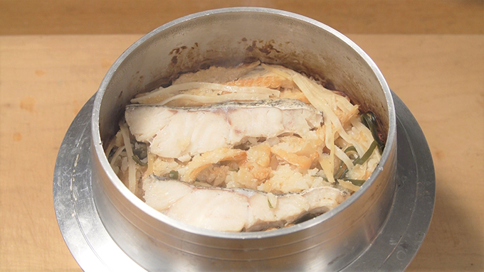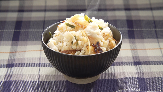 チーズたら、たらこ、干し鱈、昆布、しょうが、生鱈、氷を入れて炊く。 - ※ご家庭の炊飯器の取扱説明書をよく読み、調理を行ってください。