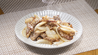 「新玉ねぎと豚肉の粒マスタード炒め」