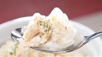 「新玉ねぎのマヨネーズレンジ蒸し」