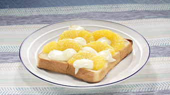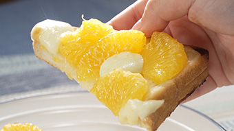 - 食パンにバターを塗り、薄皮をむいた甘夏みかんとモッツァレラチーズを交互に並べ、はちみつをかける。