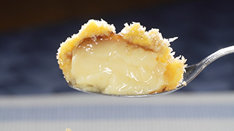 - プリンの周りに薄力粉、卵、パン粉を順につけ、さらに卵、パン粉を二度づけする。