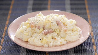 - 粉チーズ、塩を加えて軽くかき混ぜる。