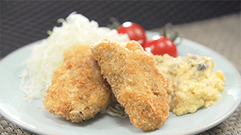 - カキに薄力粉を薄くまぶし、溶き卵、パン粉を順につける。