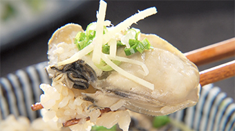 しょうがは千切り、青ネギは小口切りにする。 - 炊飯器の釜に浸水した米、かつおダシ、しょう油、みりん、酒を入れてよく混ぜ、カキをのせて炊く。
