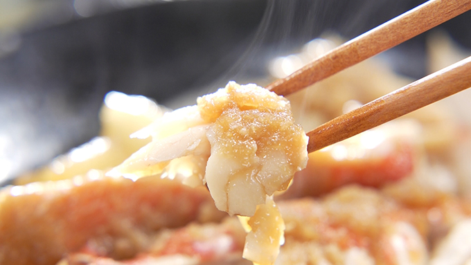 - 豚肉の両面に焼き色がついたらタレを加えて強火にし、タレを絡めながら水分が飛ぶまで煮詰める。