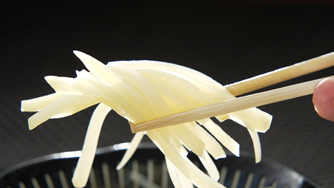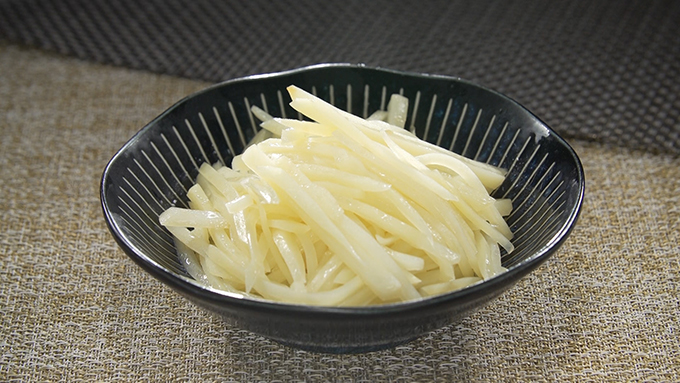 - じゃがいもは皮をむいて細切りにし、30分ごとに水を変えながら2時間以上水にさらす。