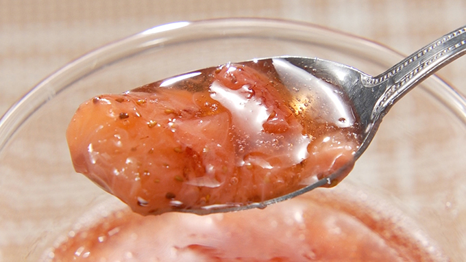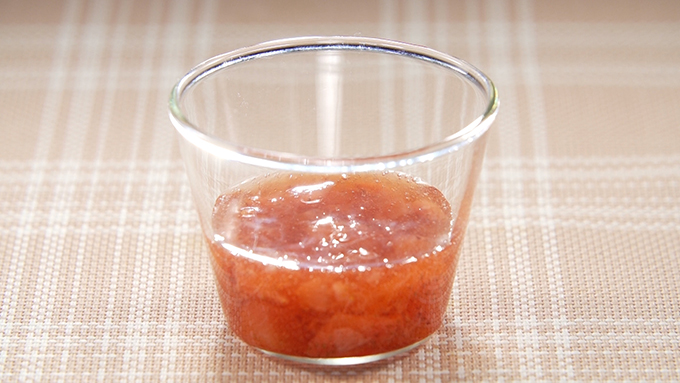 ゆるいとろみがついてきたら溶け残った氷を取り除き、器に盛る。