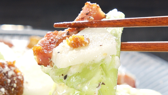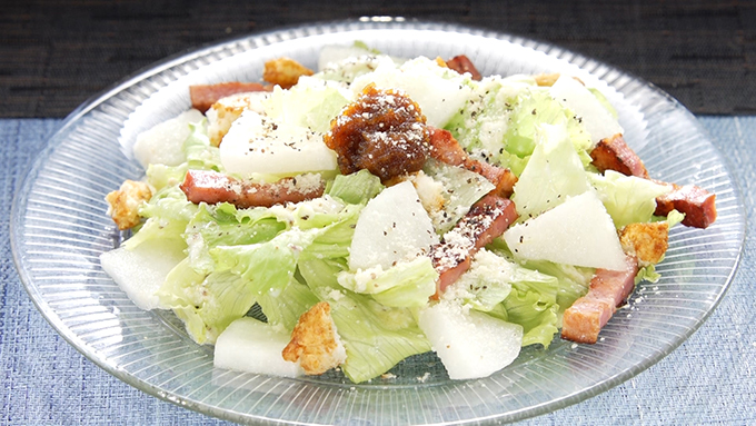 「梨とベーコン・レタスのジューシーシーザーサラダ」