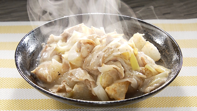 - 長ネギ、しょうが、水、鶏がらスープの素、塩、砂糖を加える。