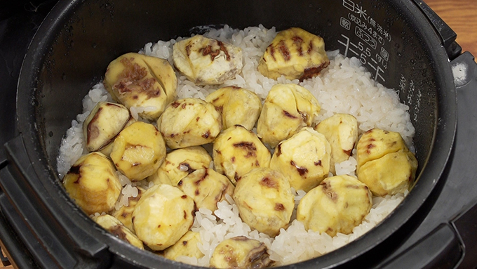 - 鍋に水と塩、栗を入れて火にかけ、沸騰したら弱火にして約40分茹でる。