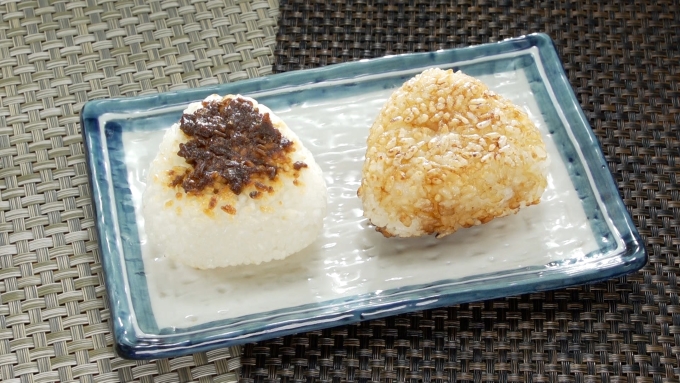 - おにぎりを作り、表面が軽く乾く程度まで焼く。