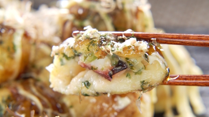 - お好みでたこ焼きソース、マヨネーズをかけ、青のり、かつお節を散らす。