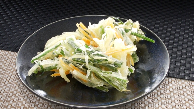 - ニラ、玉ねぎ、にんじんを加えて合わせ、