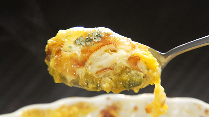 弱めの中火でやわらかくなるまで煮たら火を止め、蓋をした状態で2分ほど蒸らす。 - 牛乳とマヨネーズをよく混ぜ合わせる。