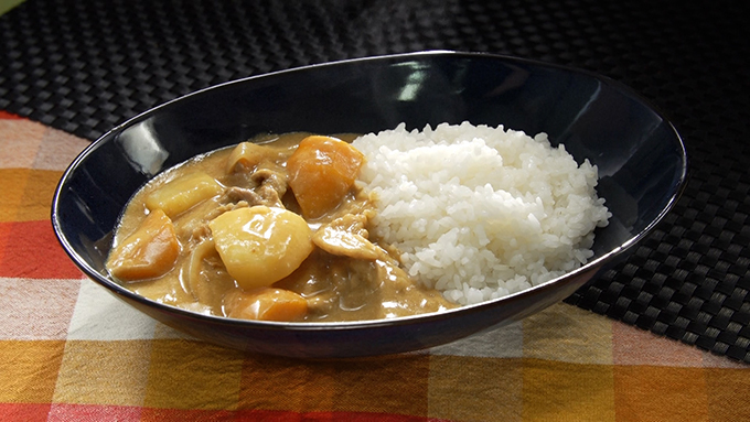 牛乳も加えてじゃがいもに火が通るまで煮込む。 - 一旦火を止めカレールウを溶かし、再度火をつけとろみがつくまで煮る。