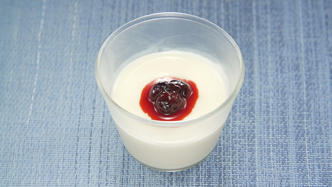 ソース状になったら器に移し、粗熱を取って冷蔵庫で冷やす。 - プリンにハスカップのソースをかける。