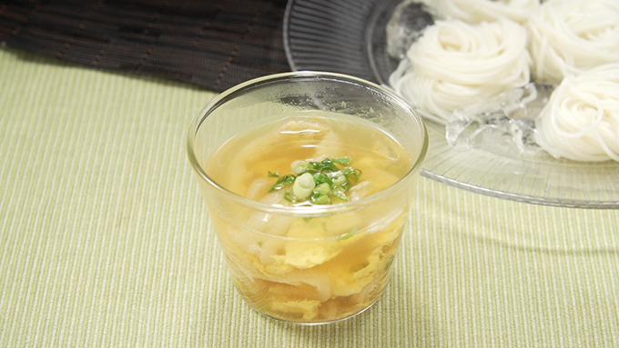 溶き卵を流してかきたまにし、青ネギを散らす。