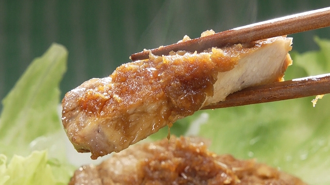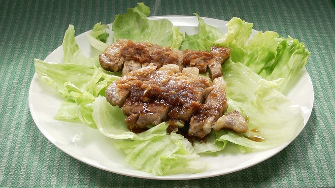 豚肉を取り出し、食べやすい大きさに切って皿に盛る。 - フライパンに残ったタレを軽く煮詰め、豚肉にかける。