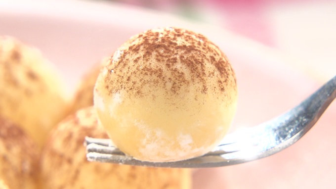 - 粉糖を手につけ、丸めて形を整えたら全体に粉糖をまぶす。