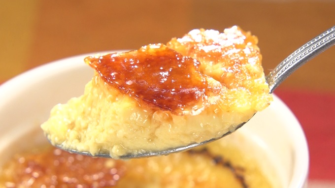 湯煎にかけ、とろみが出るまで泡立てるように混ぜる。 - 【2】の上に流し、200℃に予熱したオーブンで8分焼く。