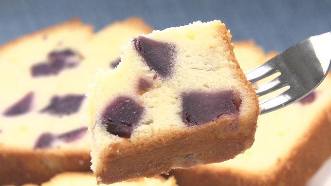 粉気が消え、生地に艶が出たら【2】のふくむらさきを加えて混ぜ、型に入れる。