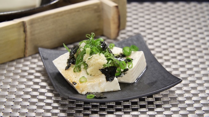 - 耐熱皿に絹ごし豆腐を乗せ、蒸気のあがったせいろで12分ほど蒸す。