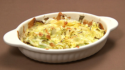 【材料】2人分(1皿分) 分量 ・ キャベツ …約1/2個 ・ 塩 …適量 ・ 粗引き黒胡椒 …適量 ・ チーズ …70g