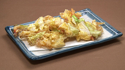【材料】4人分 分量 ・ 春キャベツ …1/2個 ・ 塩 …適量 ・ 揚げ油 …適量 ・ 釜揚げシラス …50g ・ 乾燥さくらえび …10g <衣> ・ 小麦粉 …100g ・ 天ぷら粉 …30g ・ 水 …100ml