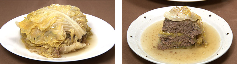 【材料】4人分 分量 ・ キャベツ …1個 ・ 合いびき挽肉 …500g ・ タマネギ …1/2個 ・ 卵 …1個 ・ 塩 …小さじ1 ・ 胡椒 …適量 ・ 顆粒コンソメ …小さじ2 ・ 水 …200ml