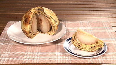 材料(1個分) 分量 ・ 梨(今回はあきづきを使用) …1個 ・ 薄力粉 …600g ・ 砂糖 …300g ・ ベーキングパウダー …大さじ2 ・ 卵 …6個 ・ 牛乳 …180ml ・ バター …60g ・ 薄力粉(梨に振る用) …適量