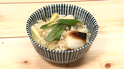 全体を混ぜ合わせ、焼いたねぎを入れて強火にし、沸騰したら、弱火にして約12分間炊く。 - 火を消し、ねぎの青い部分を入れて10分蒸らしたら完成。