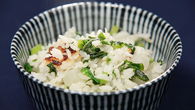 材料(4人分) 分量 <大根めし> ・ 三浦大根 …200g ・ 米 …2合 ・ 大根のしぼり汁 …180ml ・ 水 …180ml ・ 塩 …小さじ1/2 <葉としらすの炒めもの> ・ 三浦大根の葉 …200g ・ ごま油 …大さじ2 ・ しらす …30g ・ 塩 …小さじ1/2